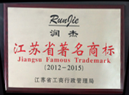 潤(rùn)杰榮獲江蘇省工商行政管理局 頒發(fā)的 江蘇省著名商標(biāo)(2012-2015)